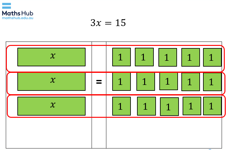 Model solving equations using digital algebra tiles (Mathigon and Tutorial) or download the Algebra mats and Algebra tiles for a hands-on experience. Show students how they should structure their written solutions for the question.