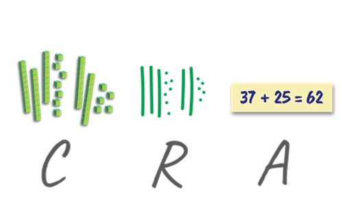 The CRA model is a three-phased approach where students move from concrete or virtual manipulatives, to making visual representations and on to using symbolic notation.