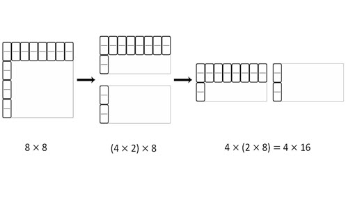 Students learn that the array is a powerful representation of multiplication: rows and columns represent factors, and these factors can be multiplied to find the product.