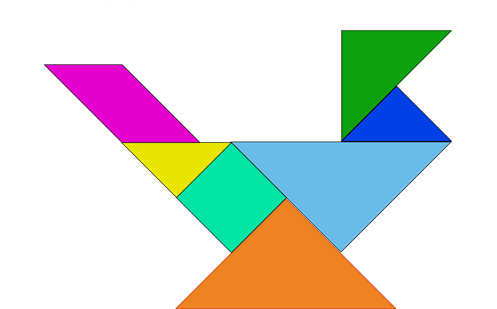 - Look at this tangram. What animal does it look like? How many different shapes is it made from?