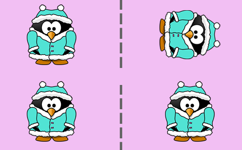 - reflection (flip) – a mirror image of the shape where the shape and image face opposite directions in relation to the line of reflective symmetry (mirror line)