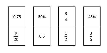 - Demonstrate that numbers can be represented in different ways – relating fractions, decimals and percentages.
