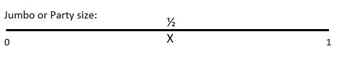 Mark with an X where half would be, then write the number of sausage rolls that amounts to directly below the line. Did you get 50? That means, if only one other person shows up including me, we would have 50 sausage rolls each!