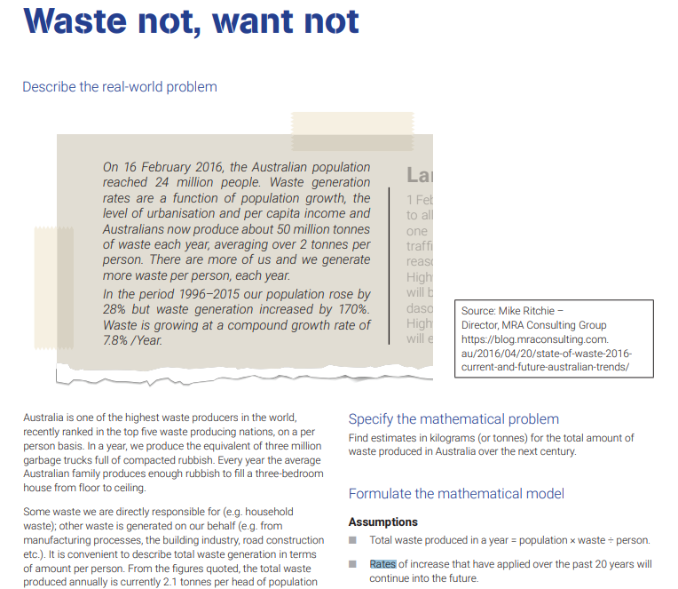 - Reinforce how the mathematical-modelling process can be used to solve real-world and practical problems.