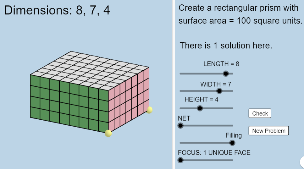 When solving and answering problems, students should choose the appropriate measurement to measure volume and surface area. Give students opportunities to convert the same-shaped objects from the very small (a model of a prism) to to the very large (similar-shaped real-life example). This will support and develop student understanding of the selection of an appropriate unit of measurement for area and volume. It also initiates thinking in the idea of scaling.