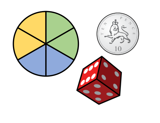 A complementary event occurs when there are only two outcomes. In this situation the probability sum of these events must be 1. Students can then calculate the probability of an event not occurring. The use of concrete materials and hands-on activities helps students come to a deeper understanding of this concept; for example, rolling a number higher than 4 with a dice, is a 2 in 6 chance, which means that there is a 4 in 6 chance that a number higher than 4 won’t be rolled in a series of trials. Demonstrate this with a large number of trials using tables to record results.
