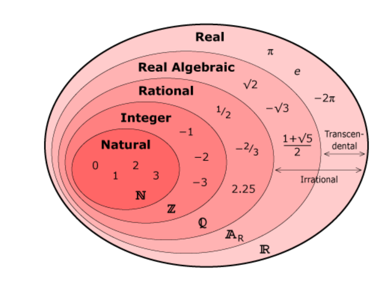 Show students how to diagrammatise number sets in concentric circles, starting with natural numbers in the middle and working outward. Students can define different number sets and the rationality of a number on their diagrams, providing examples.