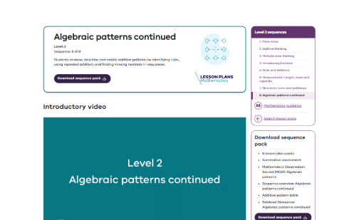 In this sequence of 6 lessons, students analyse, describe, and create additive patterns by identifying rules, using repeated addition, and finding missing numbers in sequences.