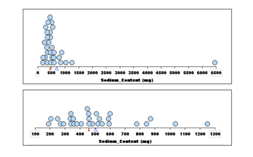 Students graph data given about the sodium content in foods, either by hand or using a software program. Student are then asked to determine and compare the mean and median for the data both including and omitting the outlier value. A student worksheet and teacher notes are provided