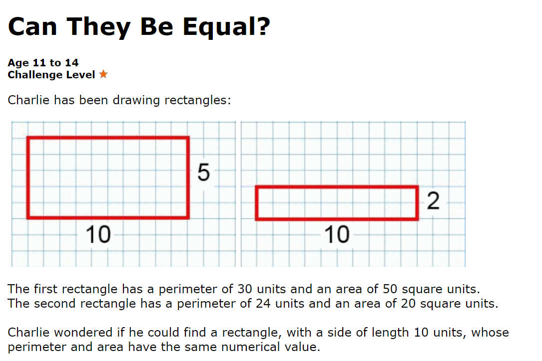 Students consider the relationship between area and perimeter and engage in mathematical thinking.