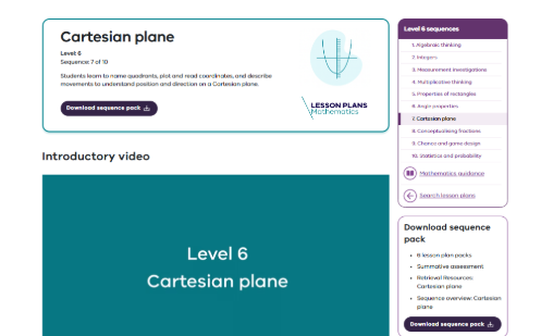In this sequence of 6 lessons, students learn to name quadrants, plot and read coordinates, and describe movements to understand position and direction on a Cartesian plane.