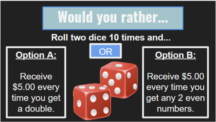 Smashing good fun learning about probability without replacement, by playing and exploring the game of egg roulette – 12 eggs, 3 raw and 9 cooked. Contestants take it in turns to choose an egg and smash it on their head, hoping to avoid the 3 raw eggs!