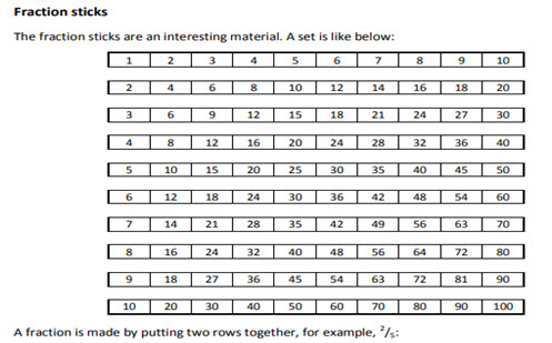 In this lesson, we use fruit to explore common/decimal fractions relating to tenths. In this lesson, students will use coloured Unifix cubes to represent tenths of a fraction on a ‘fruit kebab’. They will discover the idea of equivalent fractions and make connections using a fraction wall.