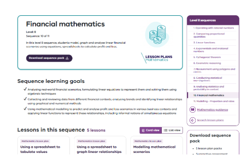 In this sequence of 5 lessons, students model, graph and analyse linear financial scenarios using equations, spreadsheets to calculate profit and loss.