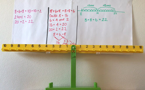 Uses an equal arm balance to model how different strategies are reliable for adding three single-digit addends.