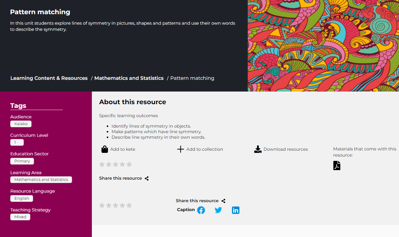 In this unit, students explore lines of symmetry in pictures, shapes and patterns, and use their own words to describe the symmetry.