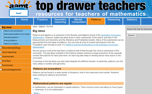 The concept of patterning is described as part of the number and algebra strand, and also the measurement and geometry strand and the statistics and probability strand.