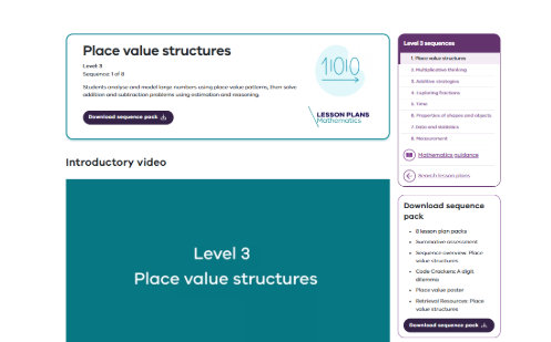 In this sequence of 8 lessons, students analyse and model large numbers using place value patterns, then solve addition and subtraction problems using estimation and reasoning.