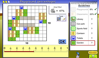 Design site plans for a school. Assign regions on a 10 by 10 grid for different uses such as a playground, canteen, car park or lawn. Calculate the percentage of the total site used for each region.
