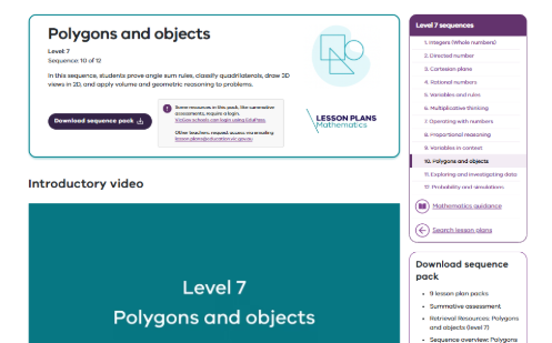 In this sequence of 10 lessons, students prove angle sum rules, classify quadrilaterals, draw 3D views in 2D, and apply volume and geometric reasoning to problems.