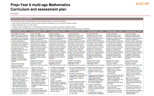 Prep–Year 6 multi-age: Mathematics: Curriculum and assessment plan