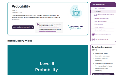 Probability calculations: Year 9 – planning tool