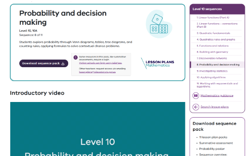This planning resource for Year 10 is for the topic of Probability calculations.