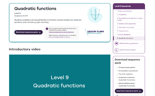 In this sequence of 12 lessons, students complete a structured handout and check worked solutions to revise key quadratic skills including graph sketching.