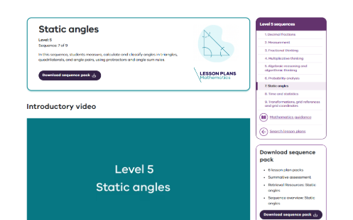 In this sequence of 6 lessons, students measure, calculate and classify angles in triangles, quadrilaterals, and angle pairs, using protractors and angle sum rules.