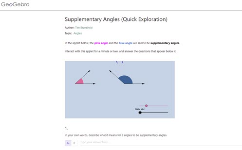 In this activity students are shown what constitutes a supplementary angle and answer a series of questions to demonstrate their understanding.