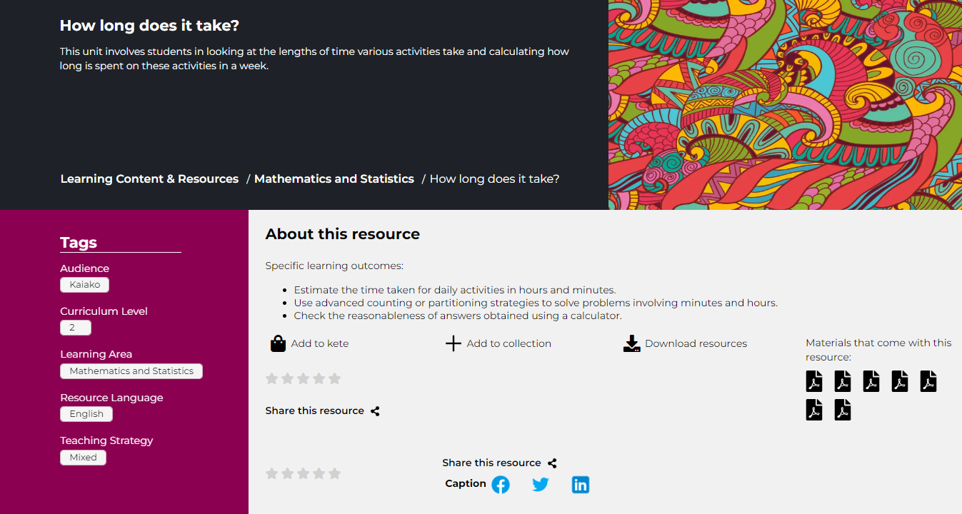 This unit involves students looking at the length of time various activities take, and calculating how much time is spent on these activities in a week.