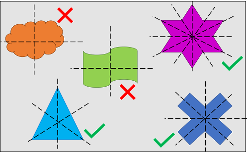 Recognise line and rotational symmetry of shapes and create symmetrical patterns and pictures, using dynamic geometric software where appropriate |