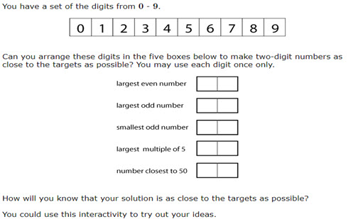 Students are asked to arrange the digits 0 to 9 to provide the solutions to a set of given rules. There may be multiple solutions and students will have to justify their choices. The resource includes the problem prompt, teacher notes and sample student responses.