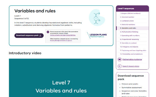 In this sequence of 9 lessons, students develop foundational algebraic skills, including notation, substitution and deriving algebraic formulas from patterns.