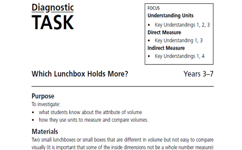 Use this diagnostic task to assess what students know about volume and units to compare volumes.